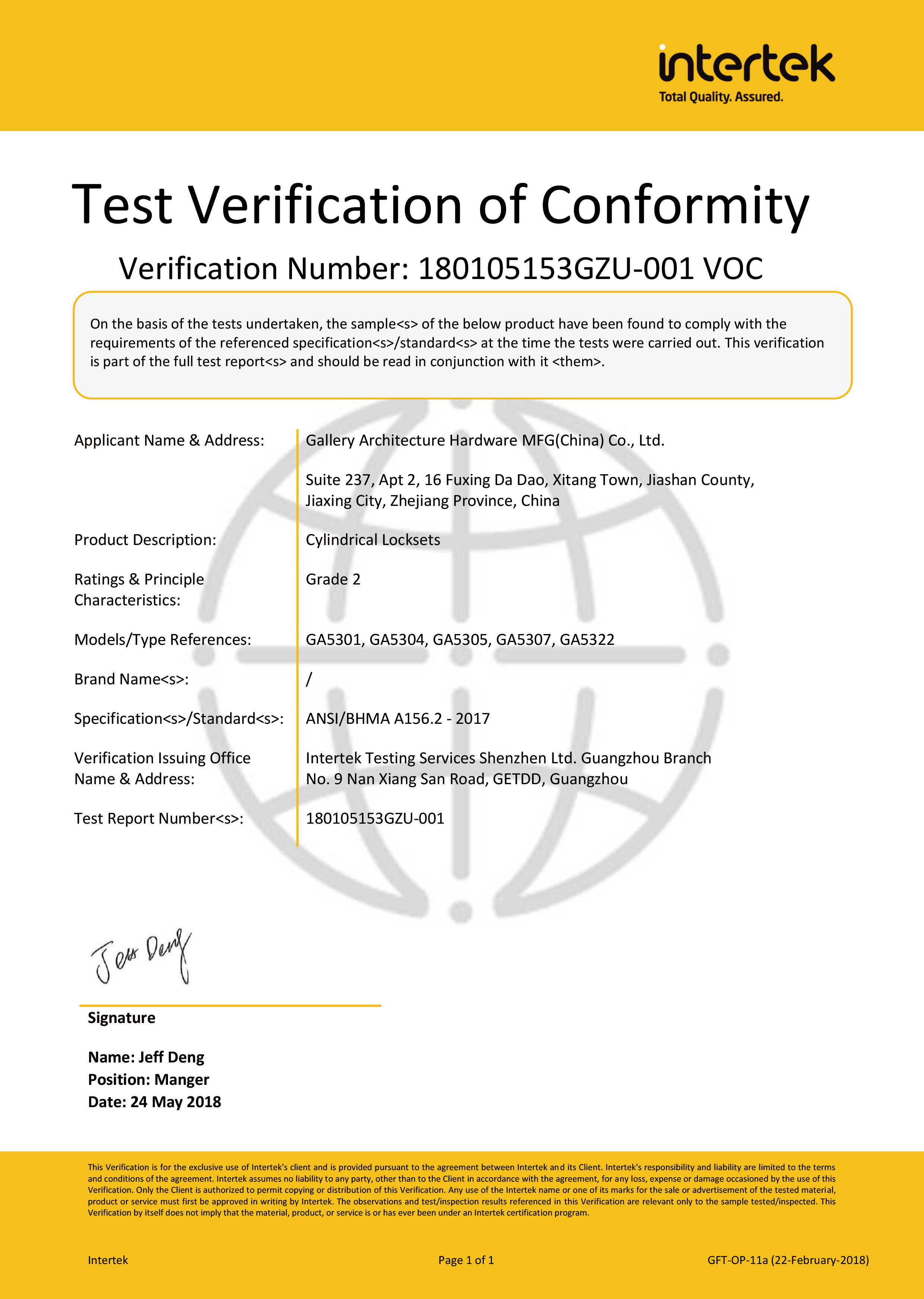浙江堅迪五金制造有限公司始建于 1995 年。自 2003 開始,公司致力于高標(biāo)準(zhǔn)商業(yè)鎖的研發(fā)工作,并于 2006 及 2007 年,8700 插芯鎖系列獲得美國國家標(biāo)準(zhǔn) ANSI A 156.13-2005 一級、ANSI A 156.2-2003 二級和美國 UL 10C3 小時防火測試認(rèn)證。自 1998 年以來,公司不斷提升產(chǎn)品和客戶服務(wù)品質(zhì),并獲得了 ISO 9001 的認(rèn)證。